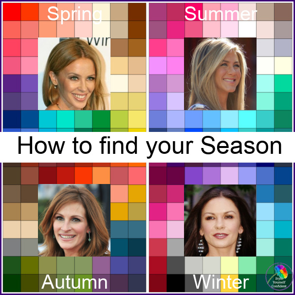 This is a simplified way of dealing with color theory, that professional specialists work out much more deeply. You can print the four color groups on a sheet with a hole in the middle for the face, held up to the mirror, allowing yourself to judge which of the four color groups makes their skin glow most. If you hang your clothes in front of you, you could divide them in the presented color seasons. You can then check by trying them on whether it actually looks good.